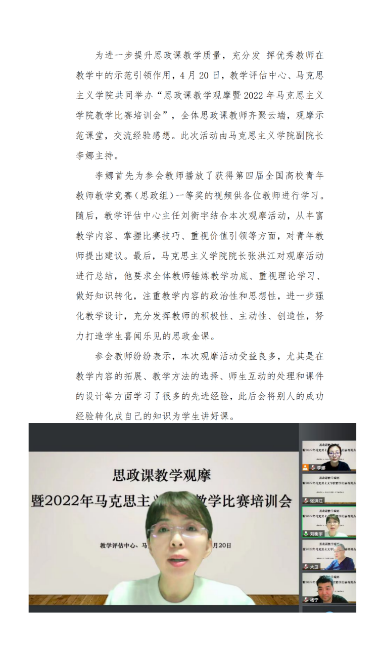 教学评估中心、BB贝博艾弗森官网举办思政课教学观摩活动