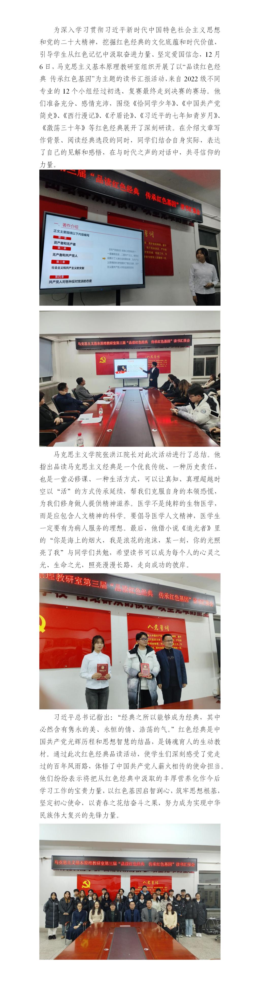 马克思主义基本原理教研室开展第三届“品读红色经典 传承红色基因”主题读书汇报会
