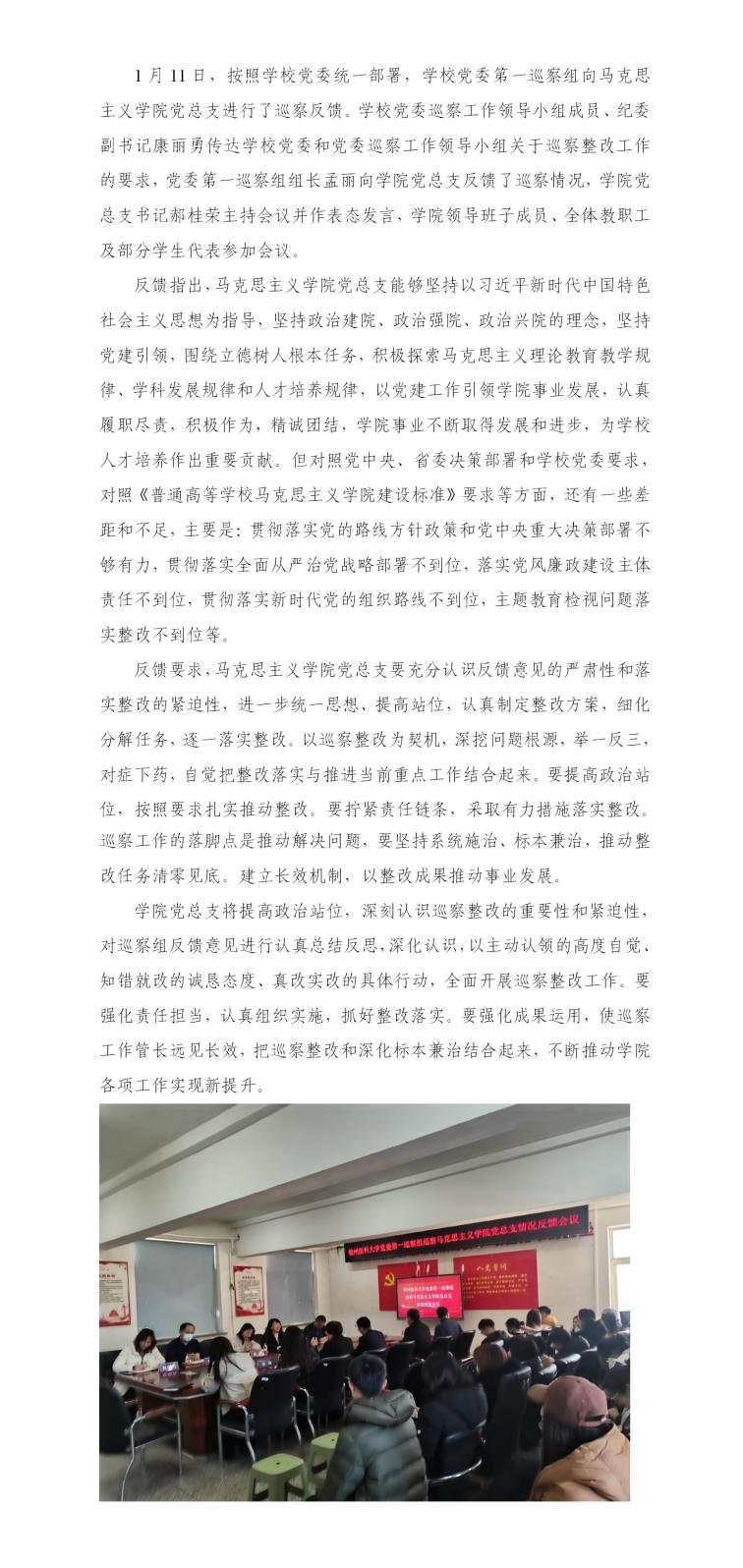 公司党委第一巡察组向公司党总支反馈巡察情况