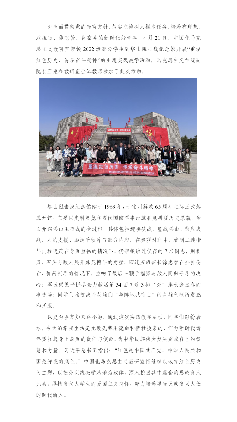 中国化马克思主义教研室开展“重温红色历史、传承奋斗精神”实践教学活动