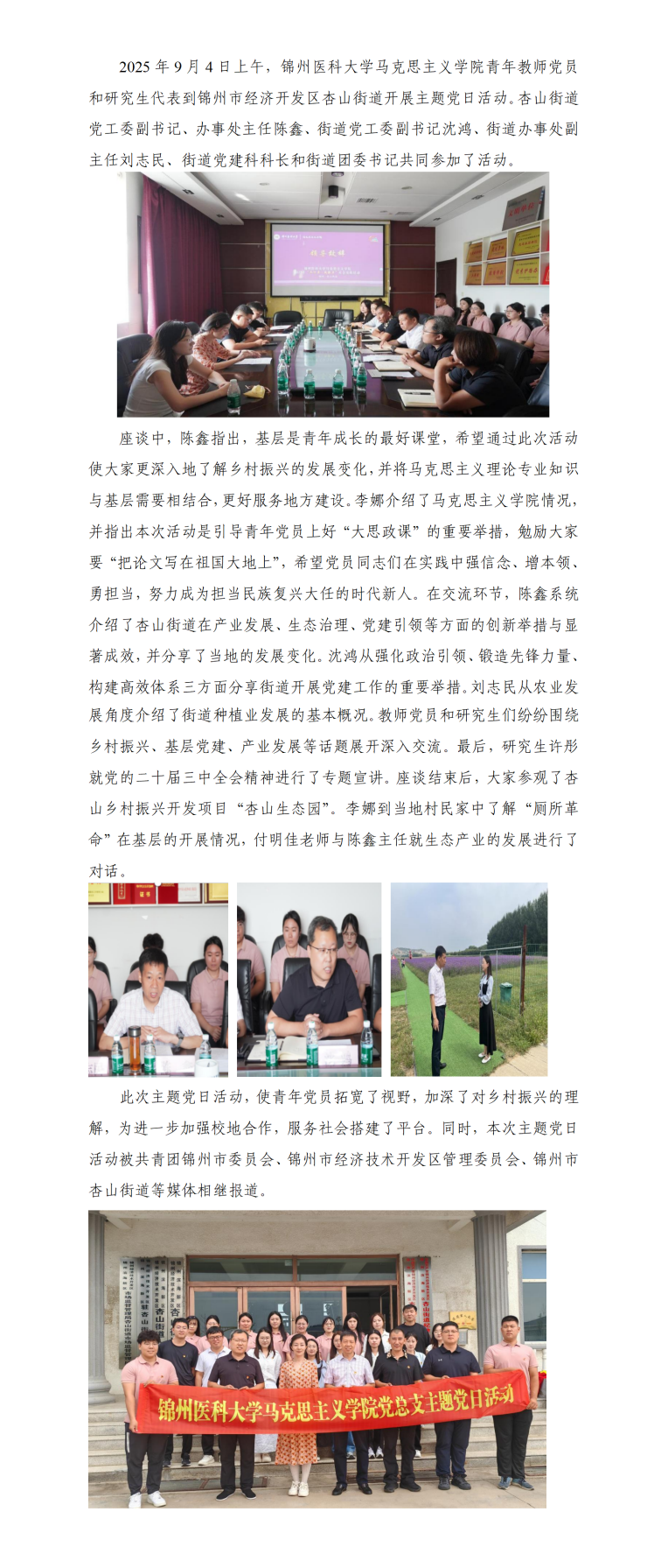 深入乡村实践 赋能人才成长——bb贝博艾弗森官方网站赴杏山街道开展主题党日活动