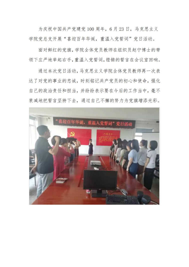 公司党总支开展“喜迎百年华诞,重温入党誓词”党日活动