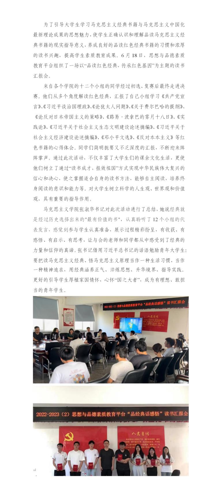 思想与品德素质教育平台开展“品经典 话感悟”读书汇报会